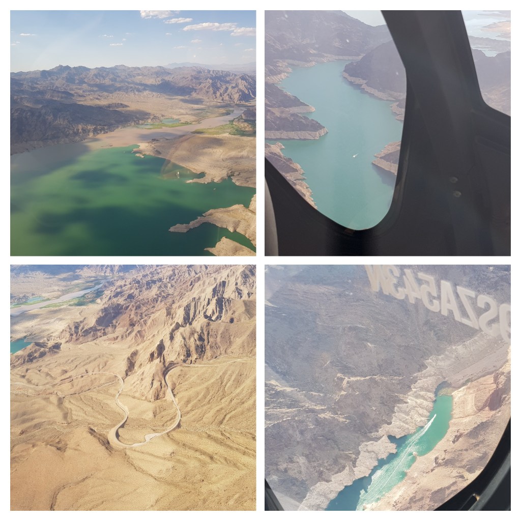 We took this unforgettable heli-tour of Sundance, Las Vegas. Sundance picked us up in a limo at our hotel, The Cosmopolitan, and dropped us back after the tour. Total time away was about four hours. We had to bring original booking docs and government photo ID as required at the Sundance office prior to departure. At the office, we were given safety briefing via hand outs, video and by the pilot himself. It is recommended to use the washroom prior to boarding the heli, as there are no facilities on this tour until return to the airport office in 2-2.5 hours. There were six passengers and the pilot. We had the front seat next to the pilot and the ride was smooth and safe. Our pilot detailed the highlights during the heli-ride both ways, as we wore headsets to listen and speak with filler music. We flew over and around the Hoover Dam. We marveled the grandeur of the Canyon which is about a mile deep, up to 18-miles wide and almost 300 miles long.